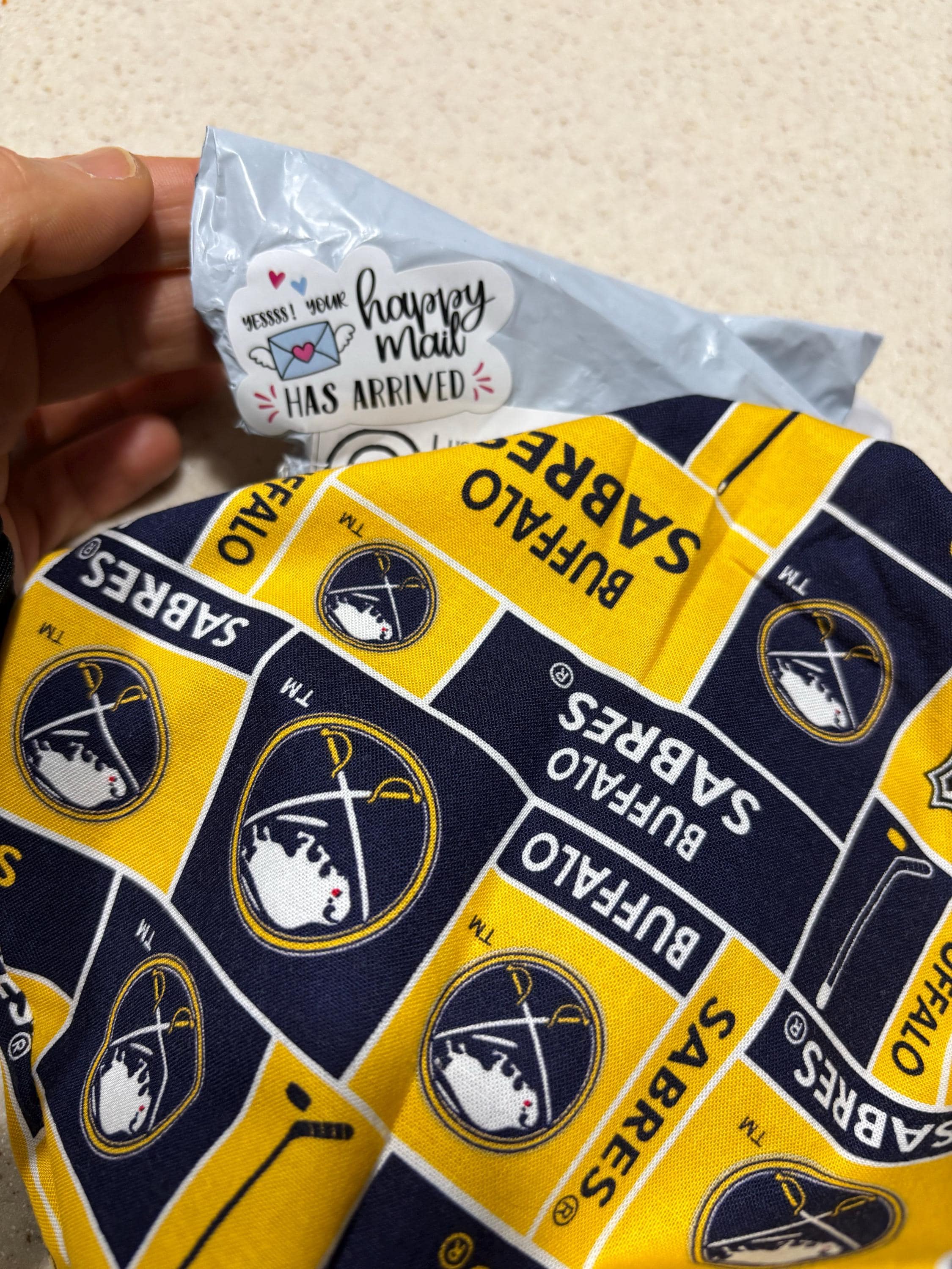 My cap arrived quickly and as described. I love the adjustable elastic toggle and the fact that it’s machine washable. This is the second cap I’ve ordered from this seller (have to show my love for the Bills AND Sabres). I’ll definitely be ordering more!