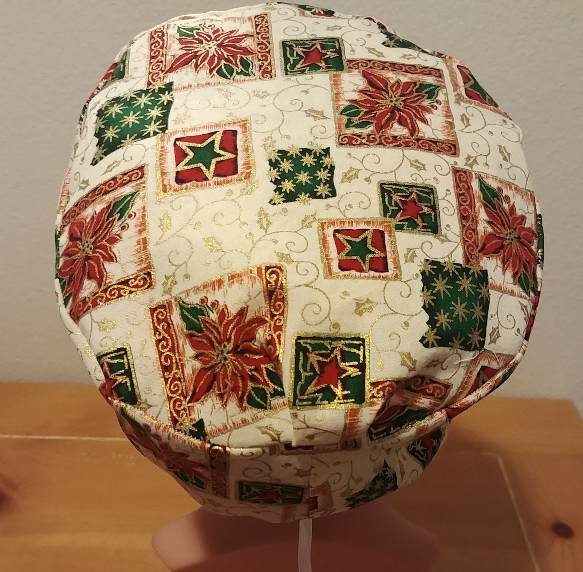 Women's Surgical Cap, Scrub Hat, Chemo Cap, Christmas Poinsettia
