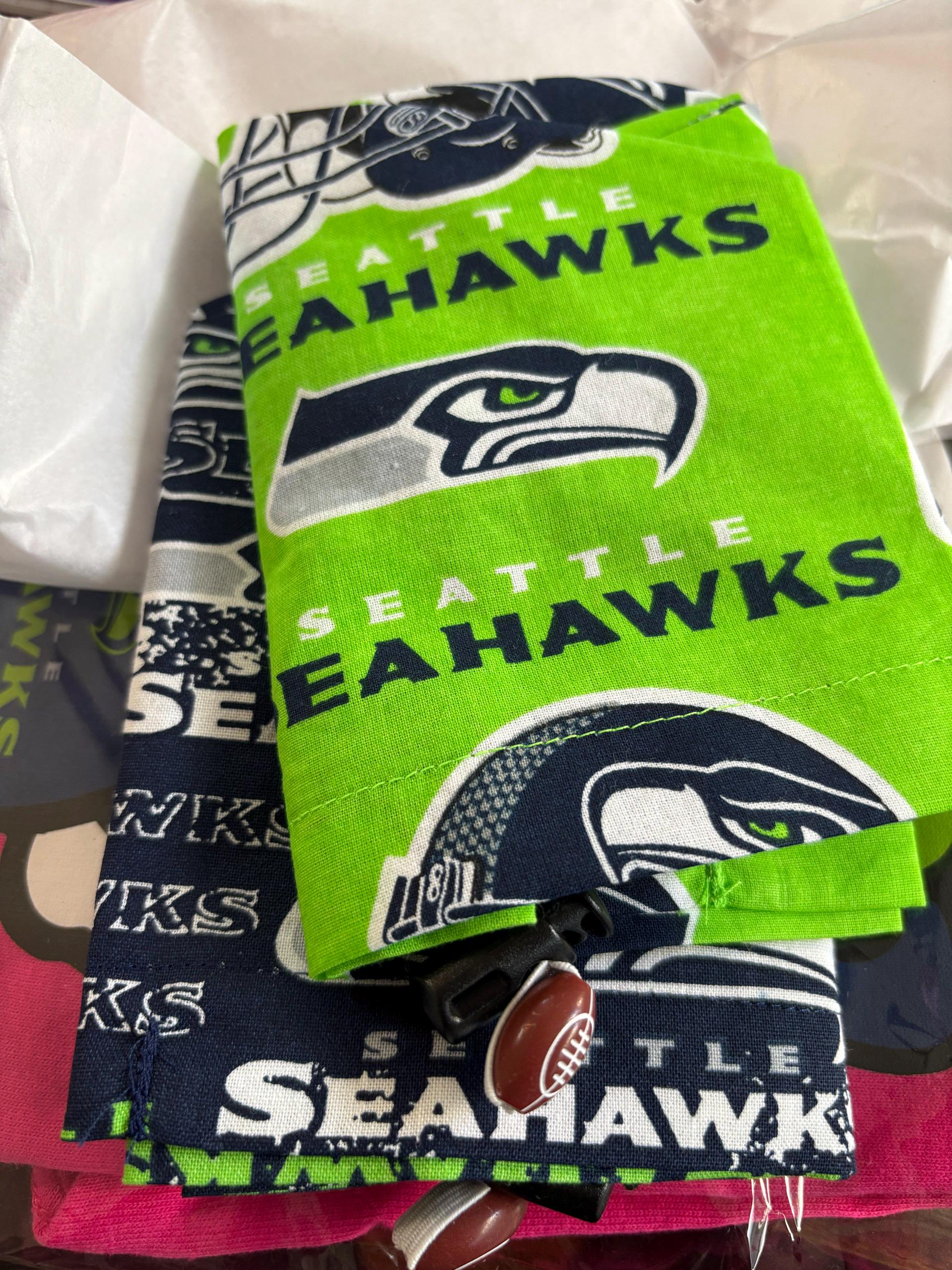 The cap is made of high quality prewashed cotton material. The back of the hat has elastic with a cord lock to adjust the fit of the hat. The seams of the cap have been serged to prevent the material from fraying.